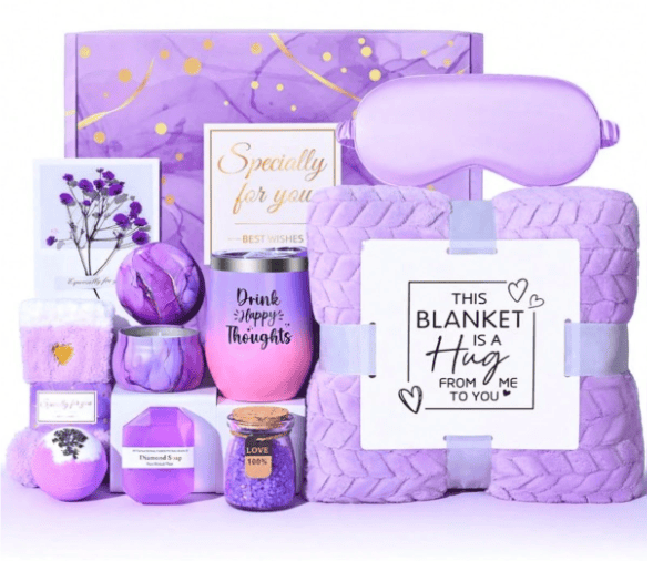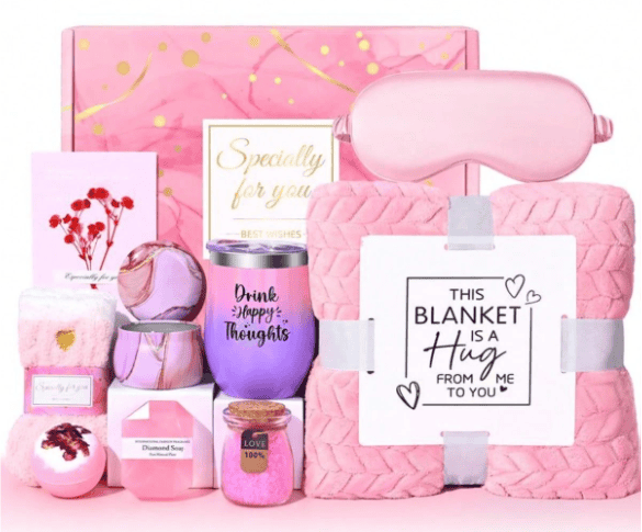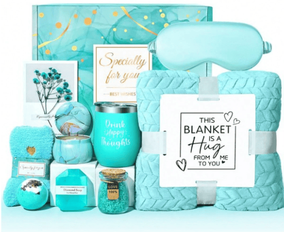 Features: “This Blanket Is a Hug From Me to You” printed message, thick woven texture, warm and lightweight