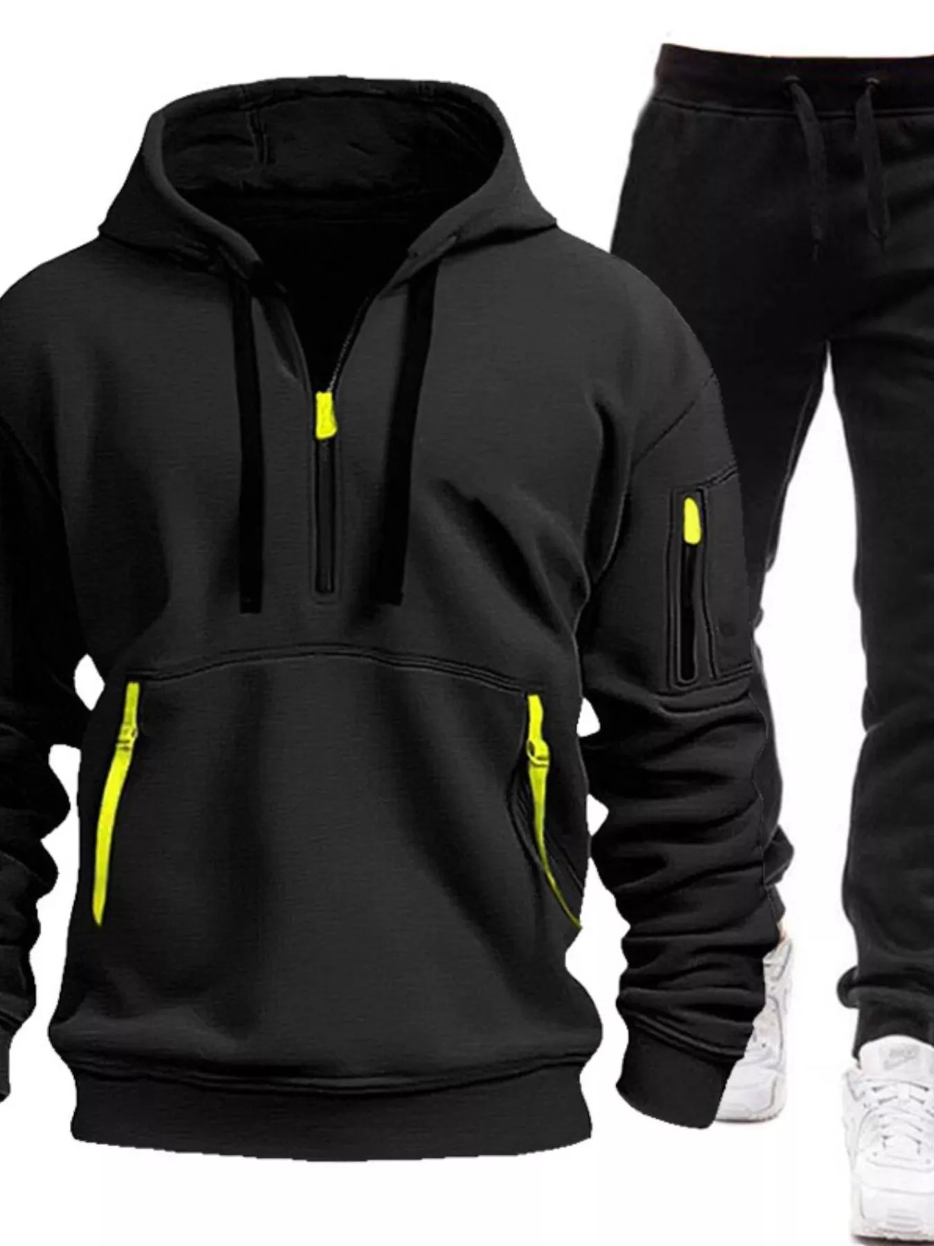 Stay warm and stylish with this Men’s Two-Piece Hoodie and Jogger Set, designed for comfort and everyday wear
