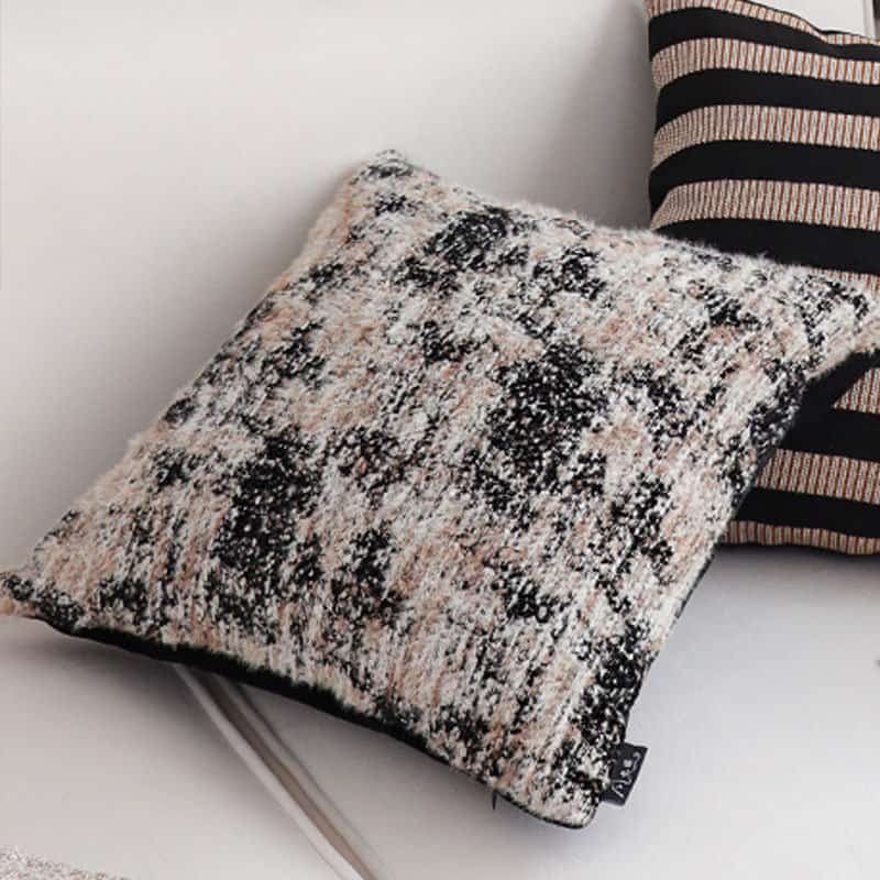 adds a touch of sophistication to your sofa, bed, or lounge area. Its black and beige textured